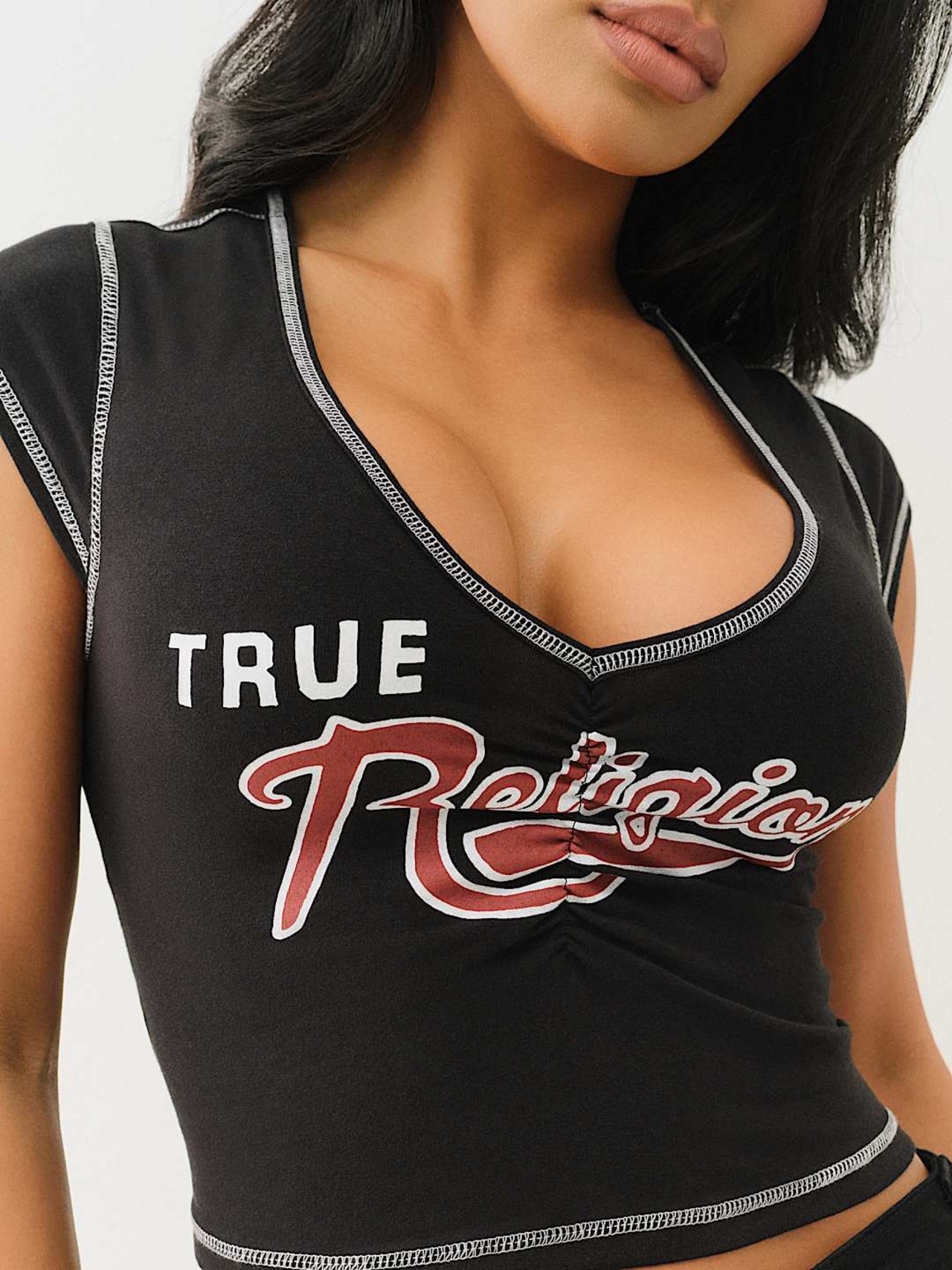 【TRUE RELIGION】RUCHED CAP SLEEVE LOGO BABY TEE