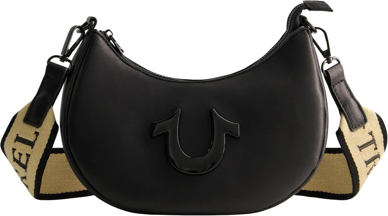軽量で耐久性のあるフェイクレザー構造、True Religionロゴ付きの調節可能で取り外し可能なショルダーストラップ、バッグの前面に象徴的なホースシューロゴが特徴です。