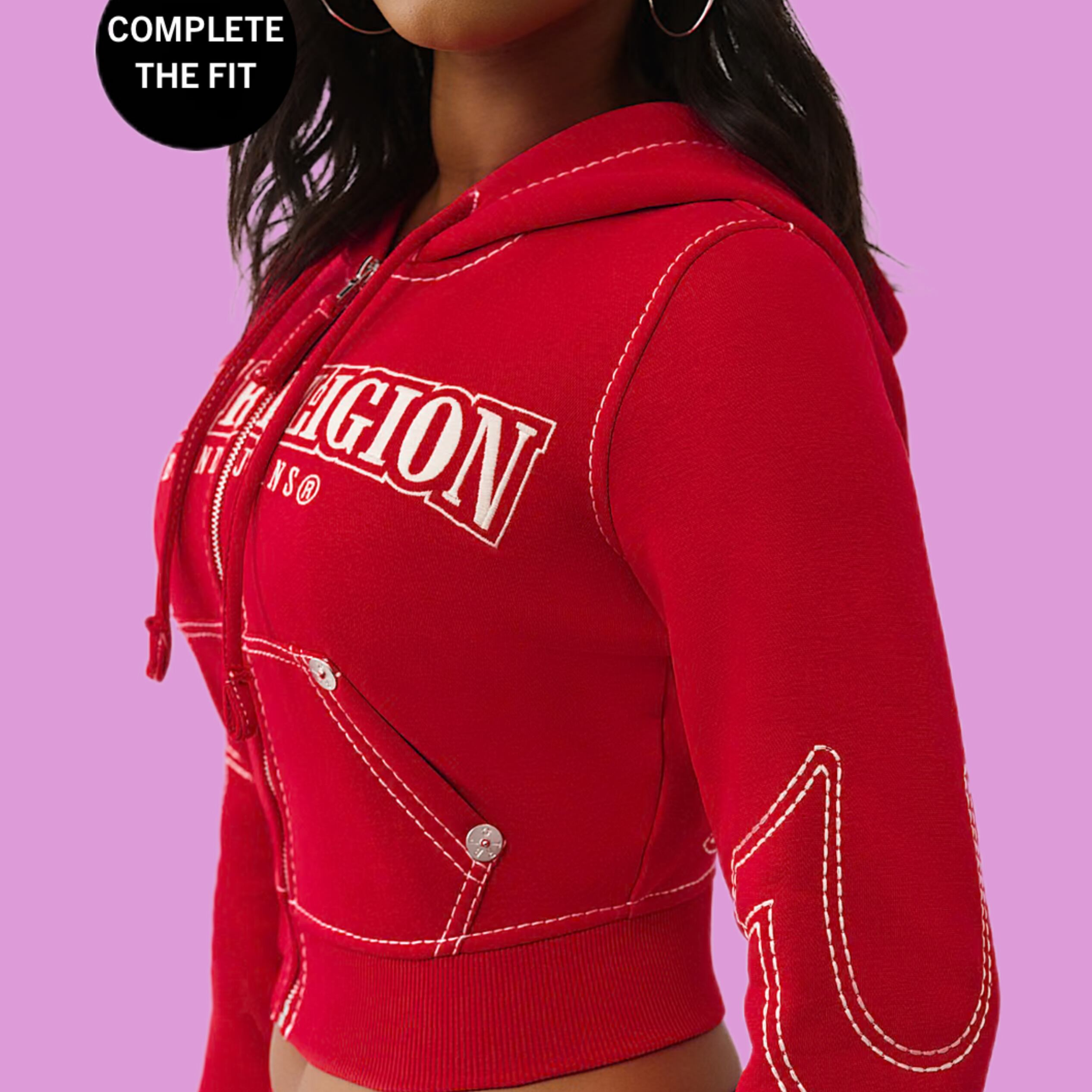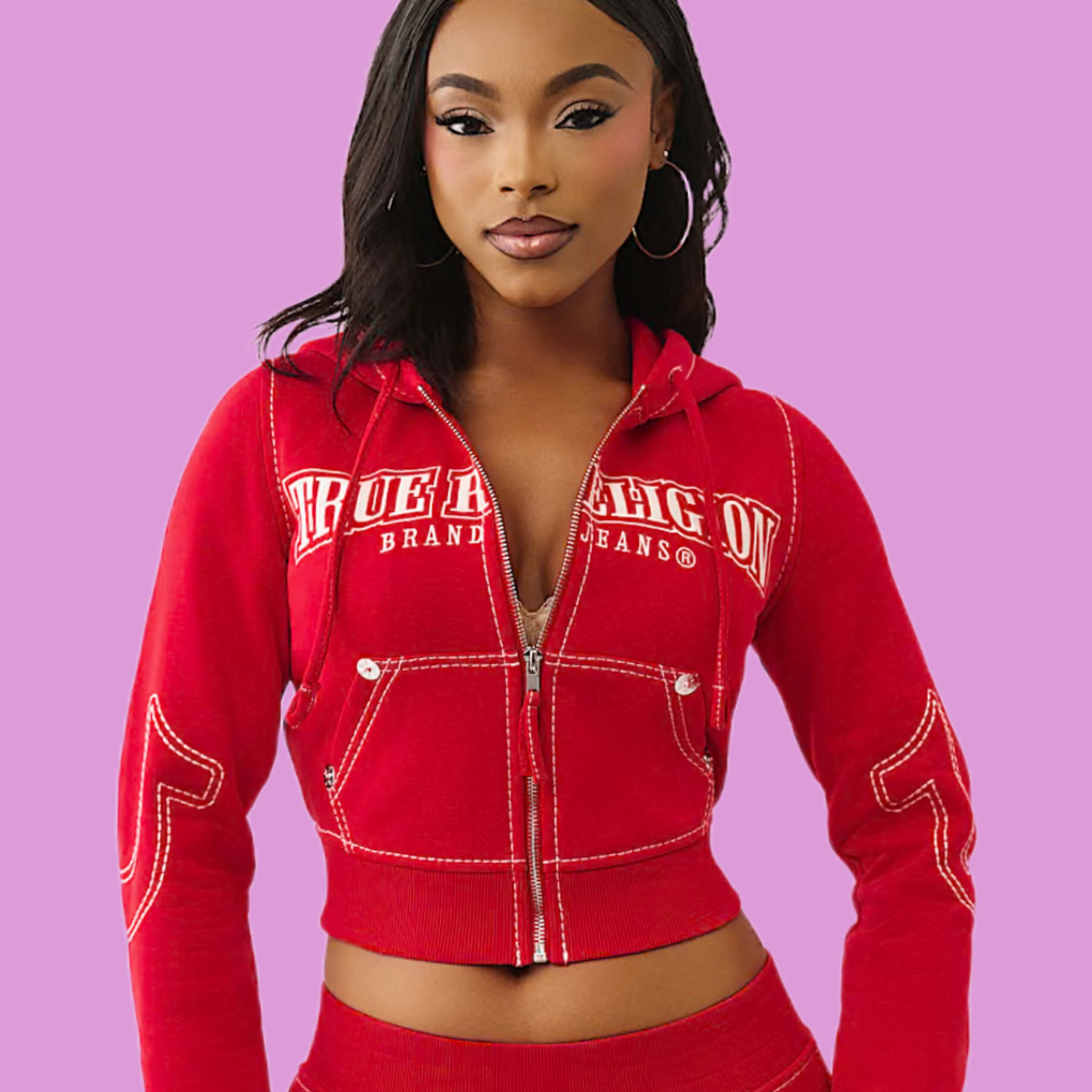 【TRUE RELIGION】 Shrunken Big T Zip Hoodie
