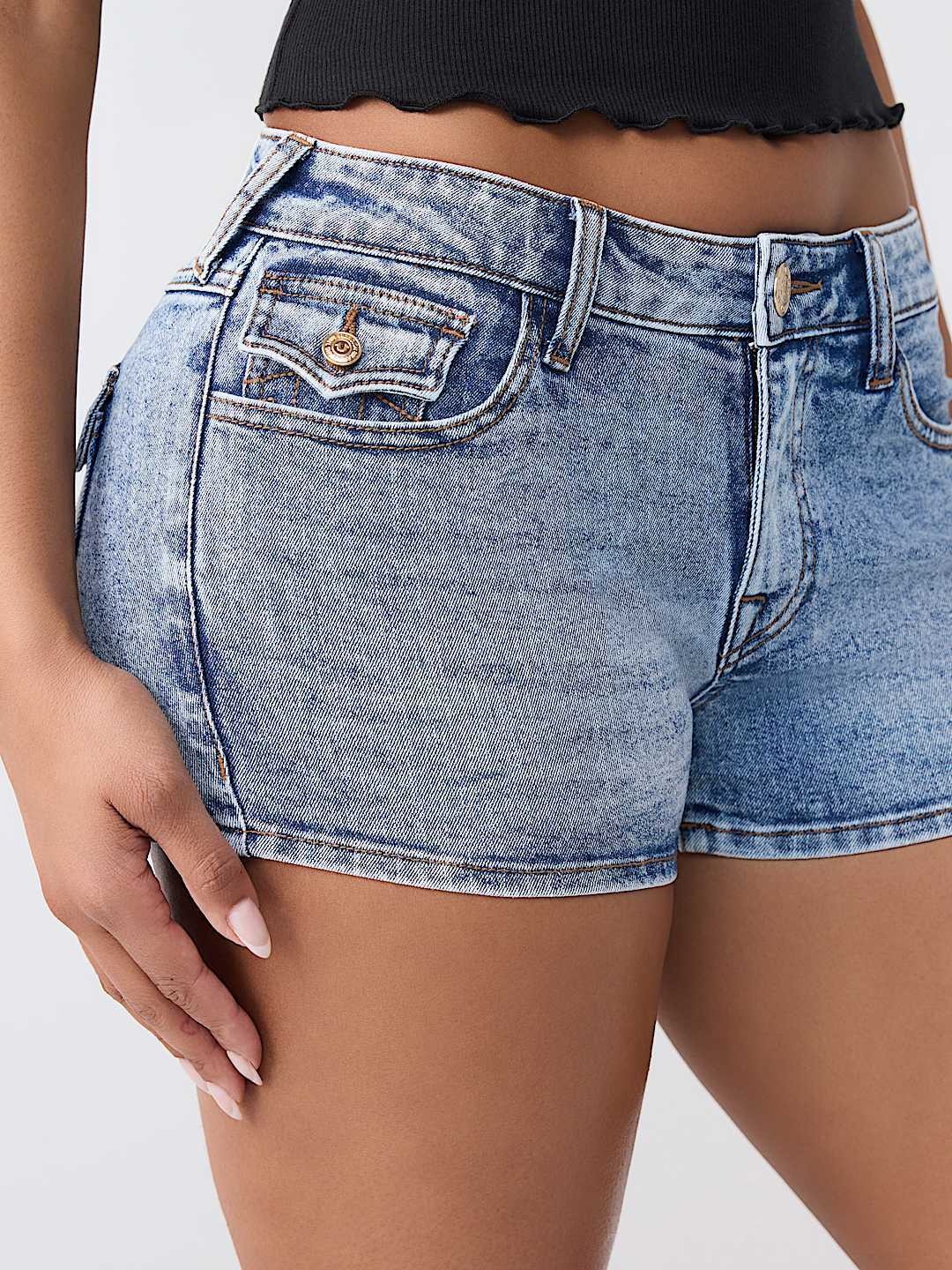 トゥルー・リリジョンのJennie Mid Rise Flap Curvy Shortが新登場!女性らしい曲線を美しく引き立てるミッドライズデザインが特徴のショートパンツです☆!フラップポケットのディテールがアクセントとなり、カジュアルながらもおしゃれな印象を与えてくれます。