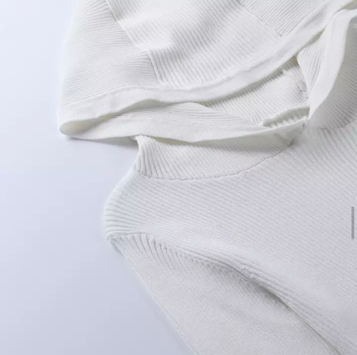 ニットフードミニワンピース【WHITE】(海外インポート 薄手ニット ストレッチ タイト シンプル無地 )