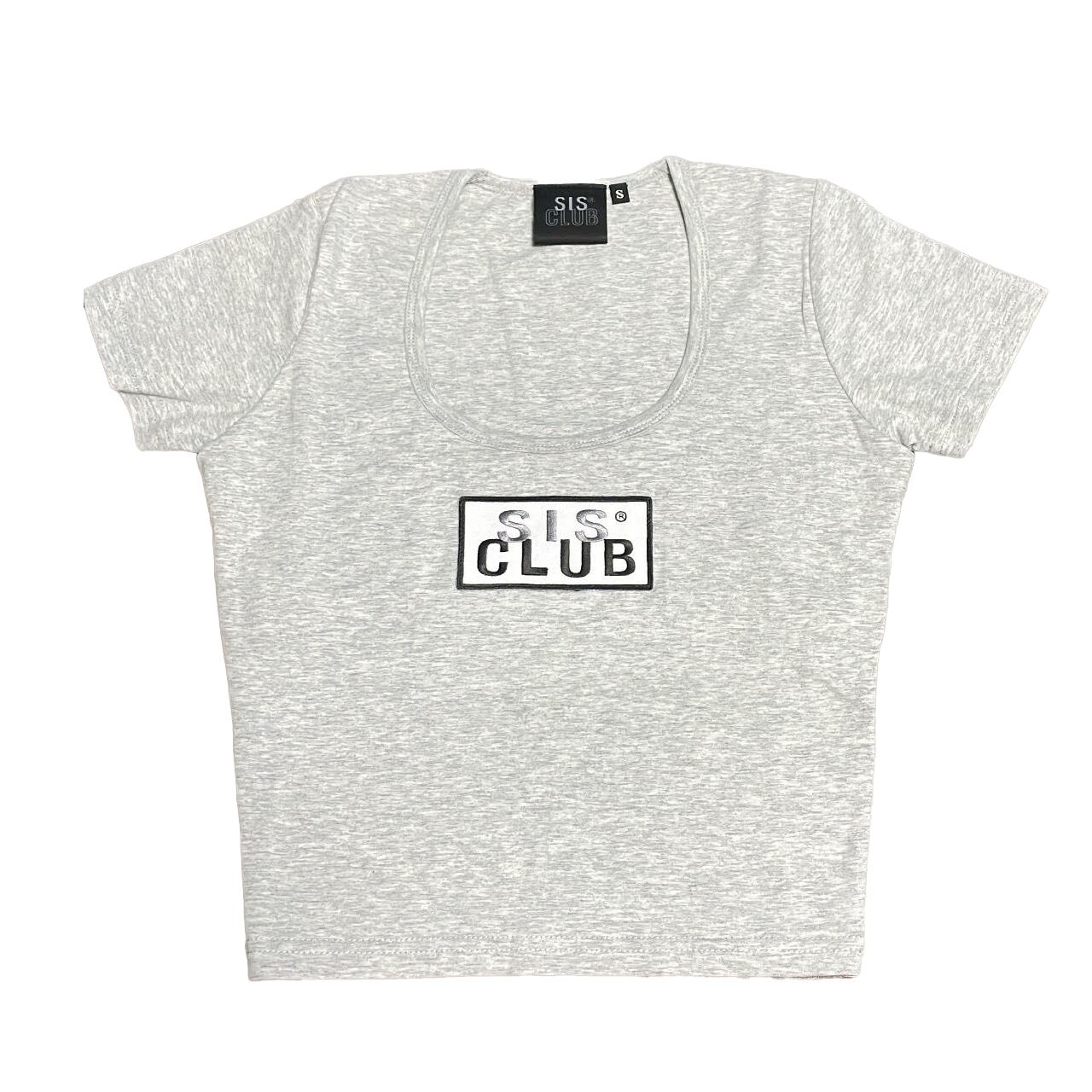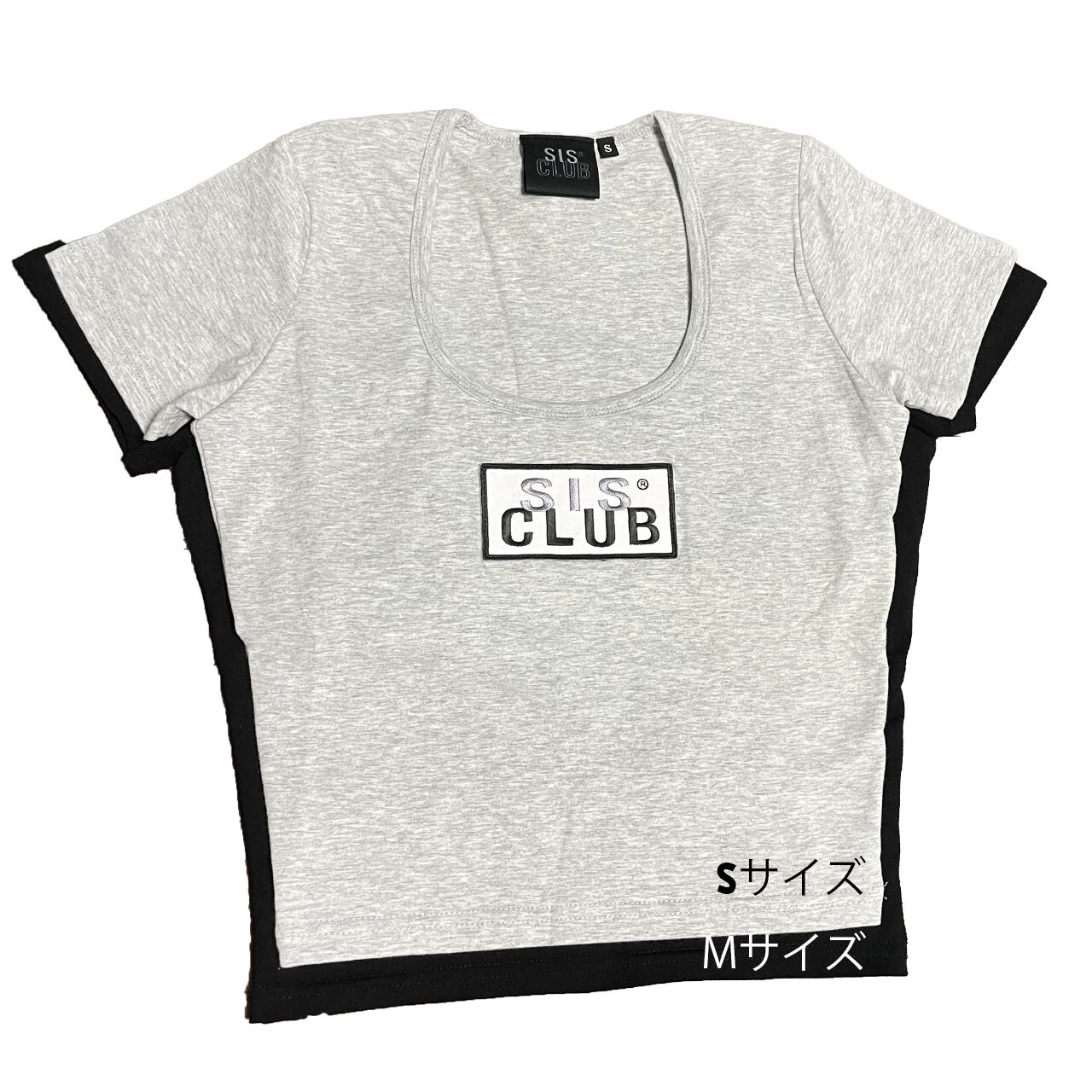 SISUCLUB BOX LOGO SHORT TSHIRT☆【GRAY】(オリジナル Tシャツ 深Uネック 胸元二重 ショート丈 ボックスロゴ)(S.M.L)