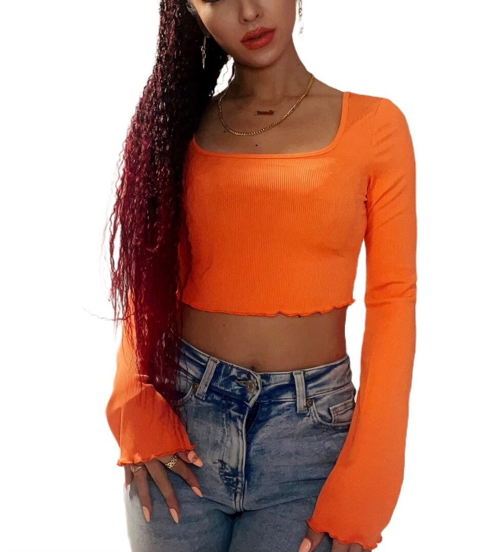 フレアロングスリーブショート丈ロンT(Orange)即日発送
