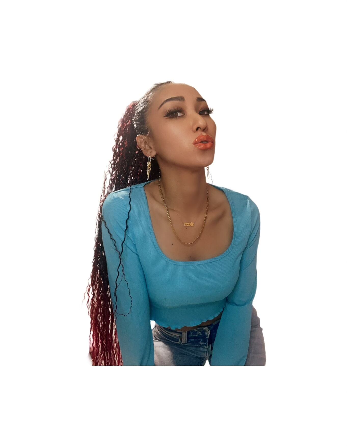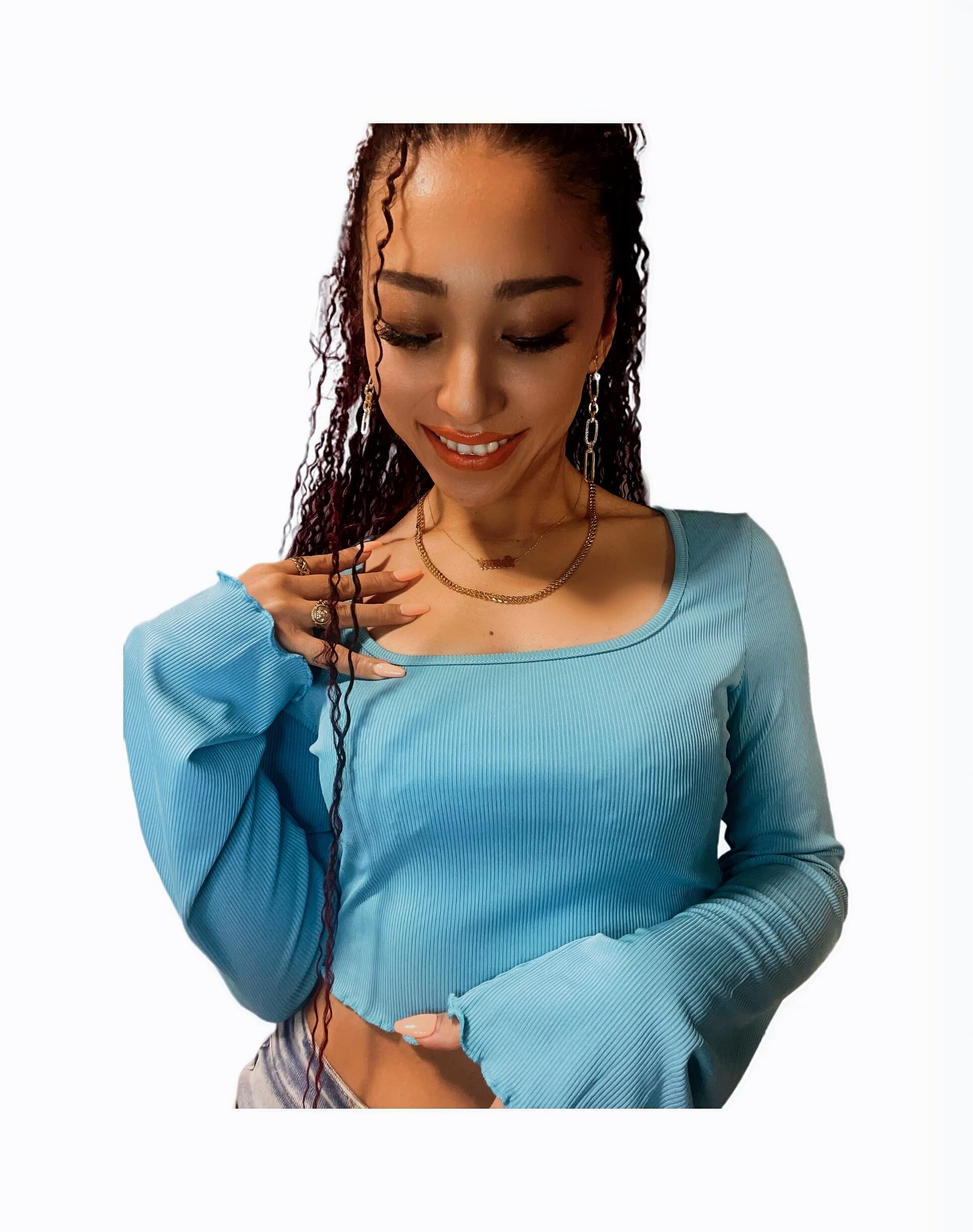 フレアロングスリーブショート丈ロンT(BLUE)即日発送