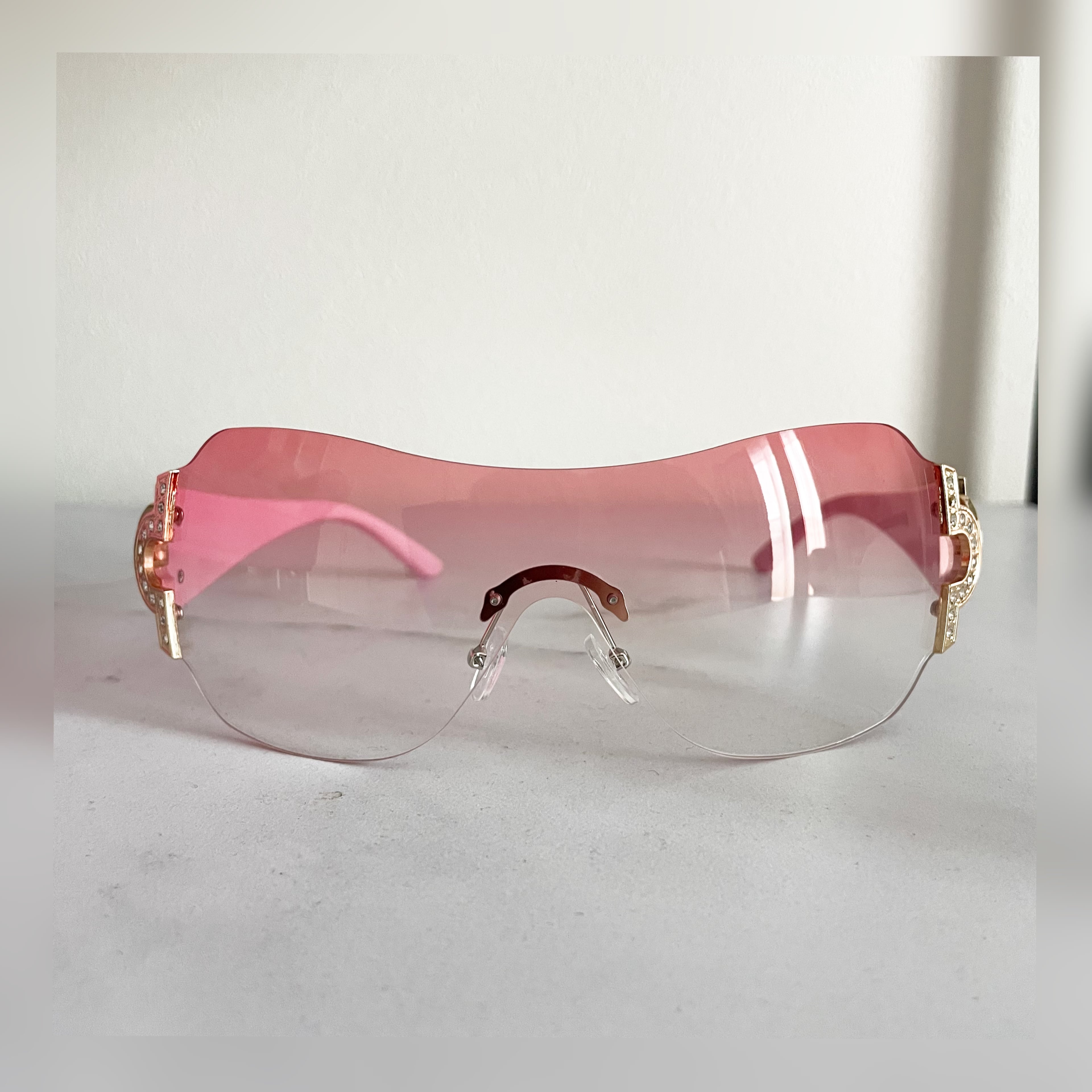 ラインストーンビックフレームサングラス【PINK/WHITE/BLACK】