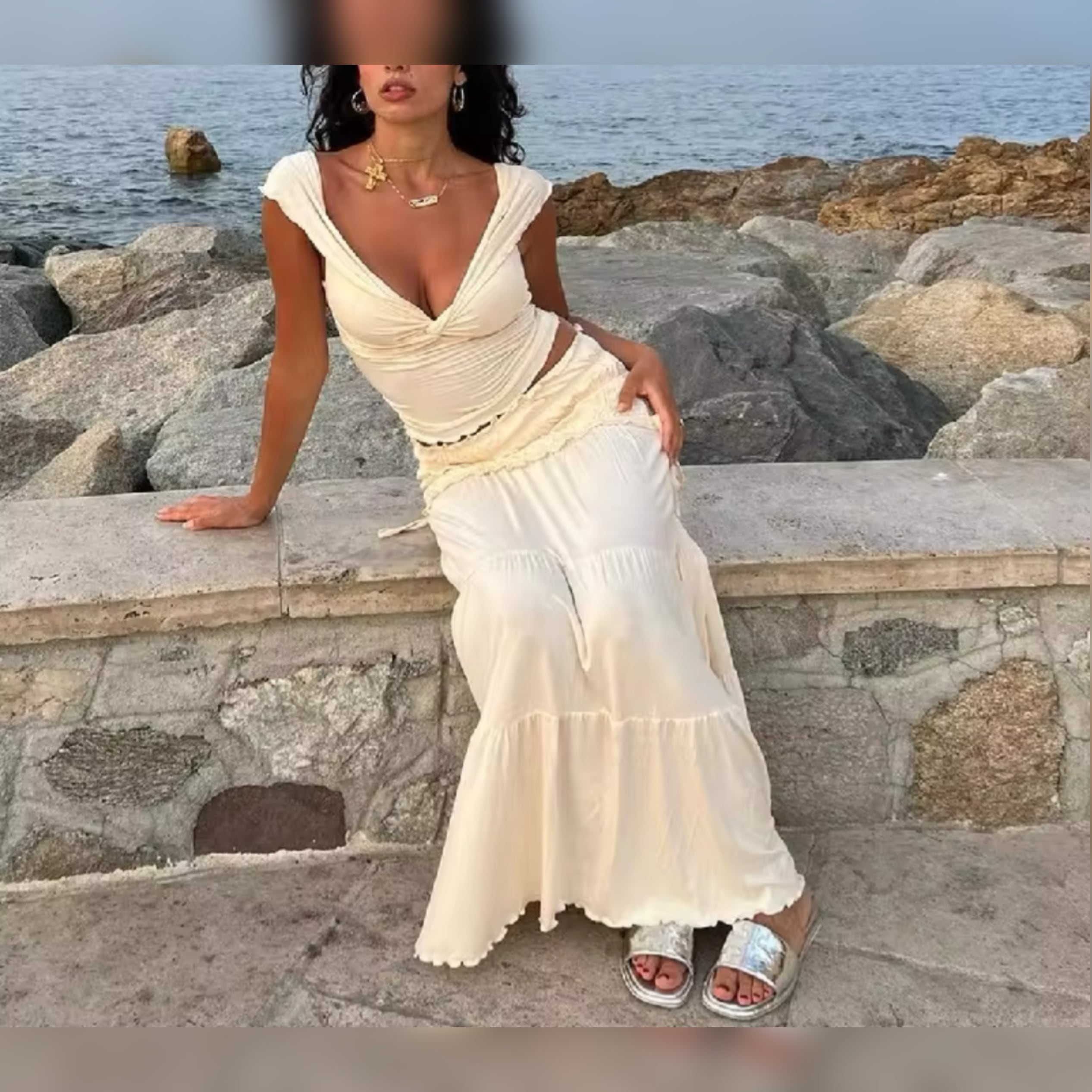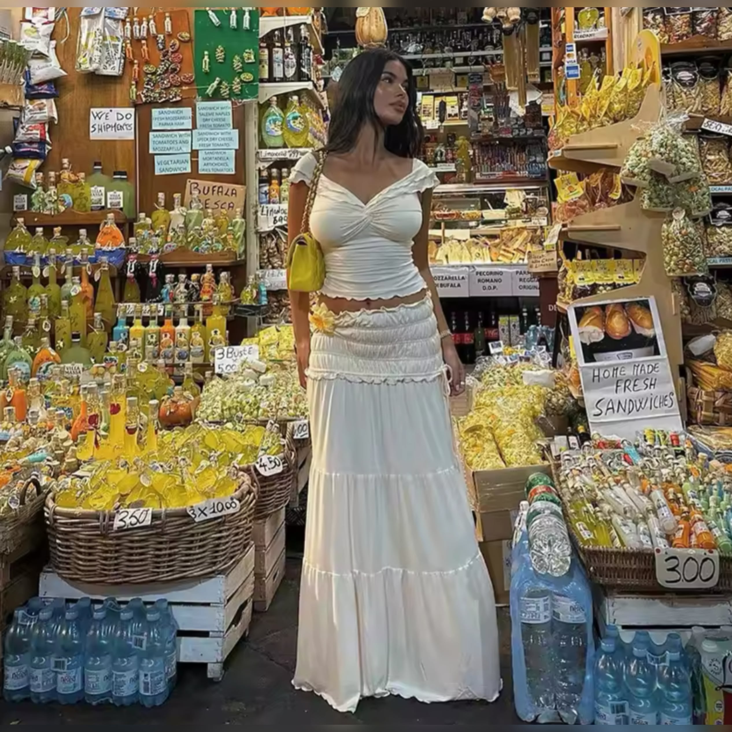 オフショルダー&フリルロングスカートセットアップ【即日発送】